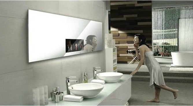 крышки TV зеркала от 10" до 82" дисплей СИД полный-HD и цифровая & сетноая-аналогов система тюнера, может быть shopwindow вашего стекла туалета, или доской демонстрации стеклянной ненесущей стены. Все виды сигнала ввода и выхода готовы позади TV, включая HDMI для DVD, AV входного сигнала, аудио VGA и ПК внутри для компьютера, RJ45 для IPTV и других интерфейсов управления как задние иК и RS232. В заключение, зеркало TV готово для всей вашей зрелищности multi-средств.